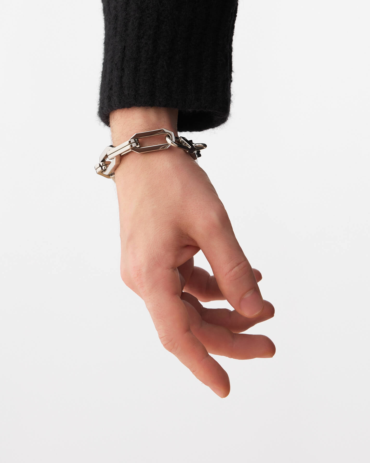 Браслет Syncro – це про силу архітектури в деталях. Створений в Італії, він поєднує холодну точність металу з ритмом сучасного життя. Подвоєні ланки — не просто елемент конструкції, а код, за яким прочитується динаміка міста, його перехрестя і маршрути.